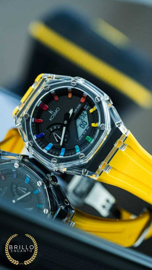 Reloj Unisex Kosmo Amarillo K4010 Doble hora Sumergible 50M