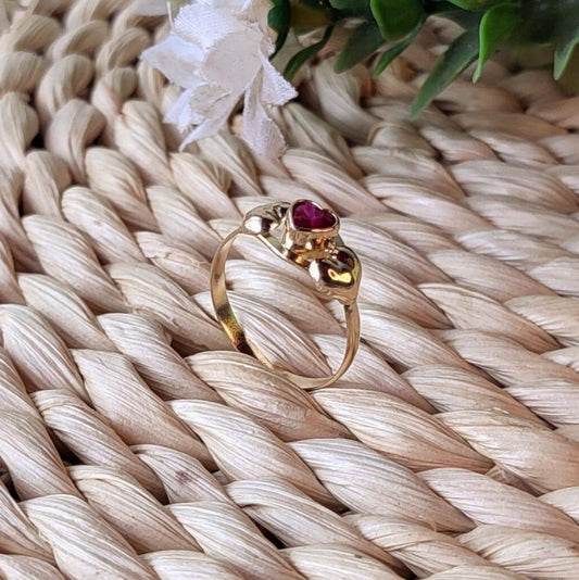 Anillo Oro Plata Mujer Delicado Con Circón Rojo