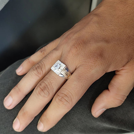 Anillo Hombre Oro Plata Elegante Cuadrado
