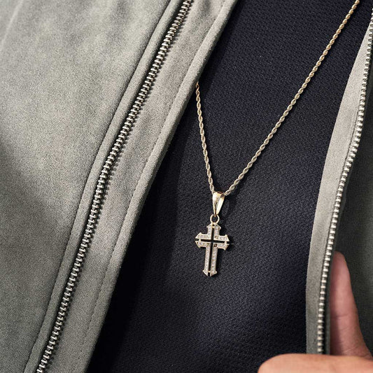 Set Oro18k Laminado Cadena Plana y Dije Cruz