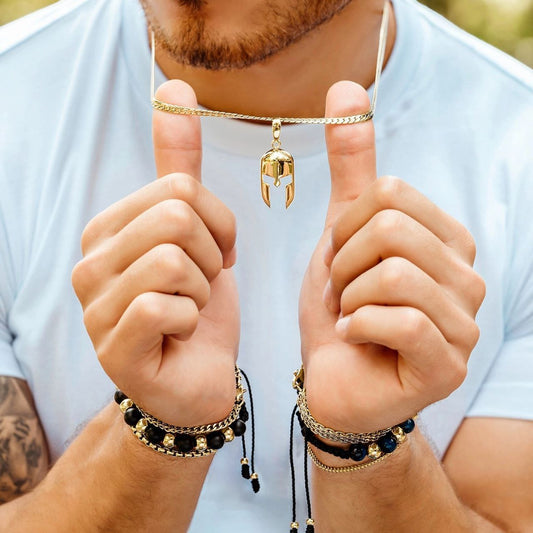 Set Oro18k Laminado Cadena Serpiente y Dije Espartano