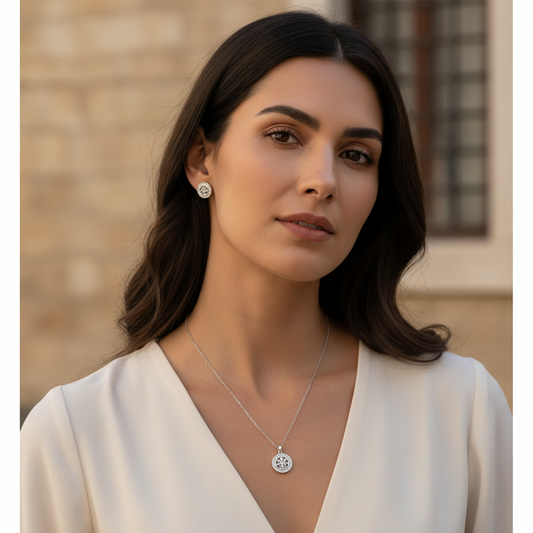 Set Árbol de la Vida · Cadena, Dije y Aretes en Plata 925 Italiana con Cristales