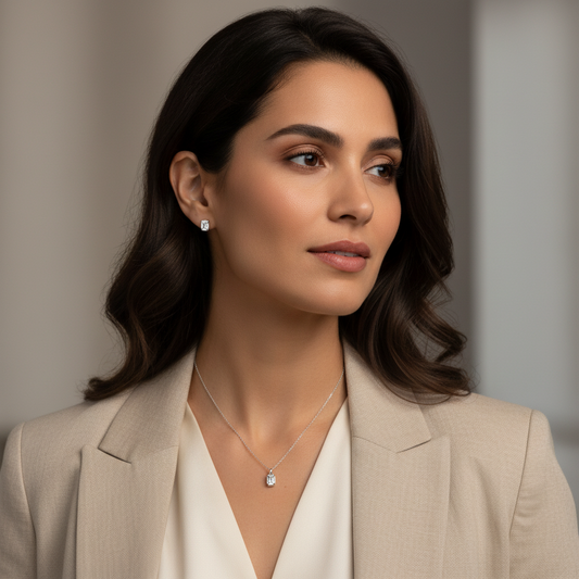 Set Diamantes Rectangulares | Cadena + Dije + Aretes | Plata 925 Italiana