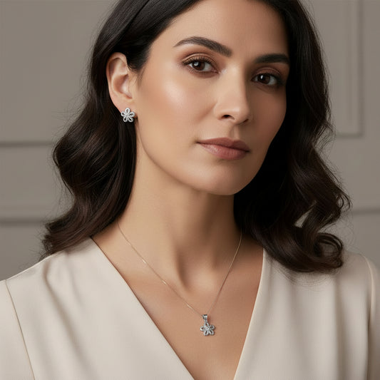 Set Floral | Cadena + Dije + Aretes | Plata 925 Italiana & Diamantes de Laboratorio