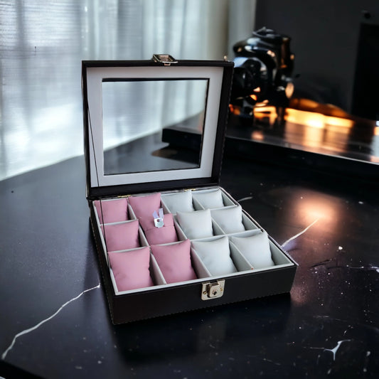 Estuche Relojero de Lujo 12 Puestos Negro y Rosa | Organizador en Cuerotex Elegante