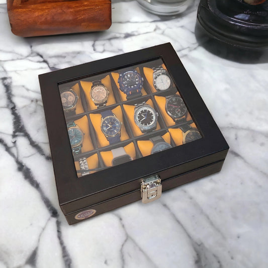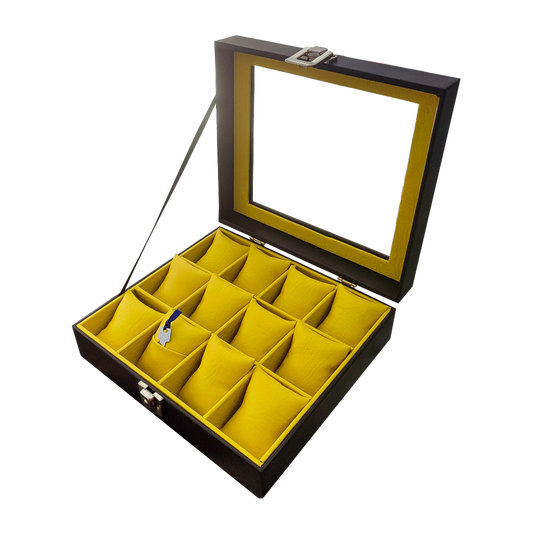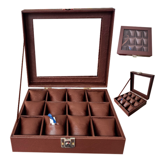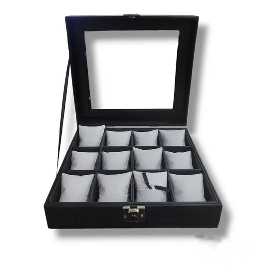 Organizador de Relojes de Lujo 12 Puestos | Estuche Elegante con Tapa de Vidrio y Almohadillas Individuales