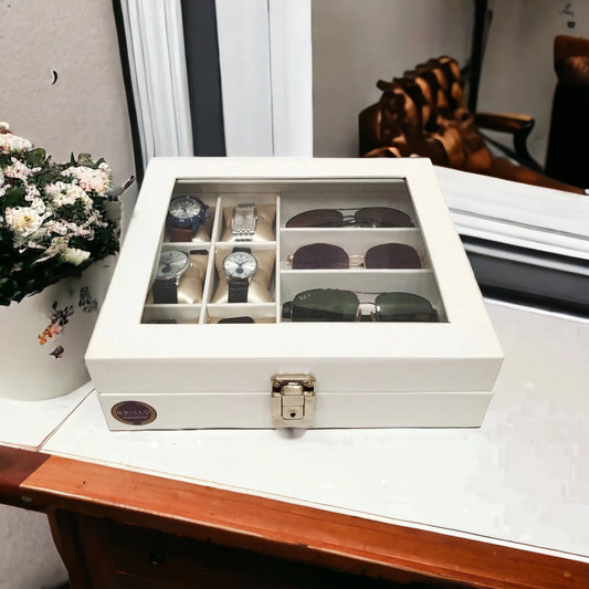 Organizador De Relojes y Gafas Artesanal De Lujo Blanco