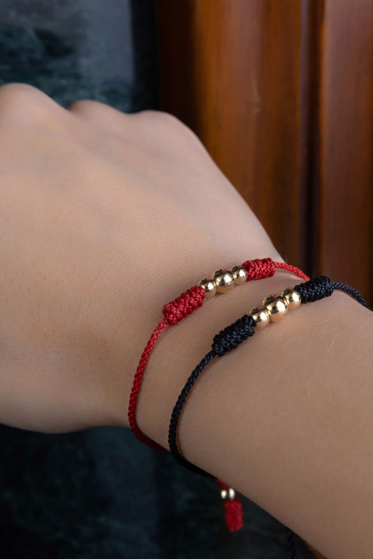 Pulsera Hilo Rojo Balines Oro 18K Diamantados Tricolor (Rosa, Blanco y Dorado) – Envío Gratis