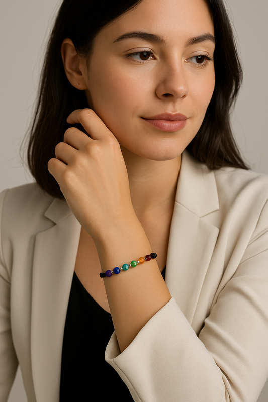 Pulsera 7 Chakras y Balines ORO 18K Diamantados