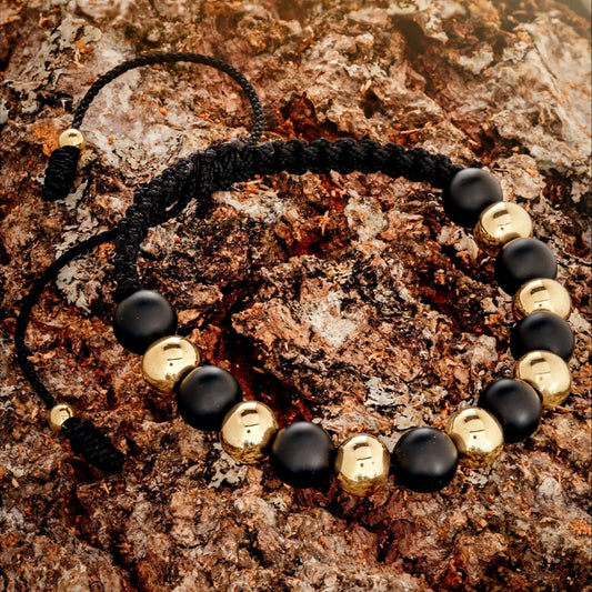 Pulsera Esclava Oro Laminado18k y Ónix Negro