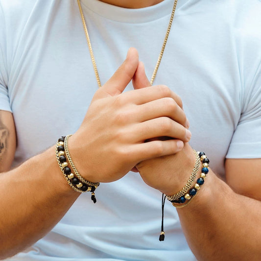 Pulsera Esclava Oro Laminado18k y Ónix Azul