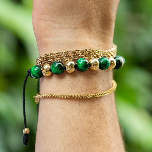Pulsera Esclava Oro Laminado18k y Ónix Verde