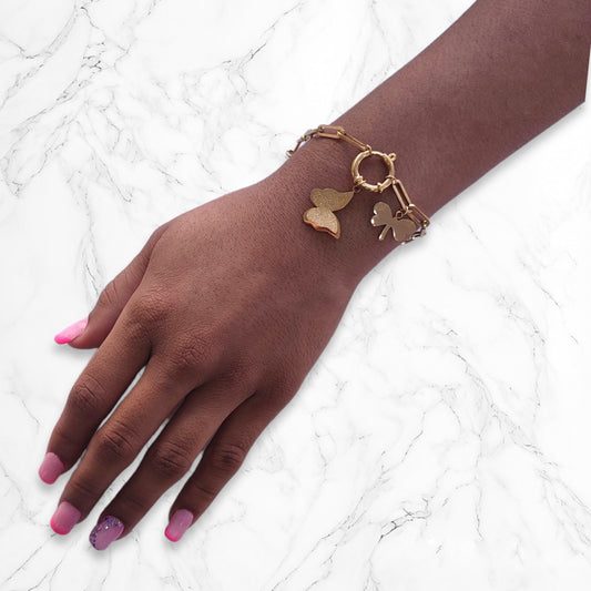 Pulsera Esclava En Acero de Mariposas Dorada 22 CM Para Mujer
