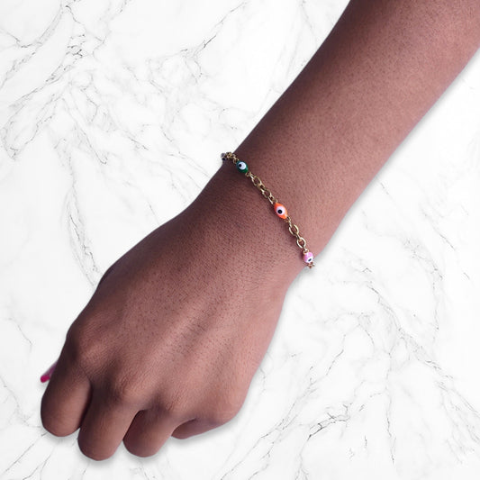 Pulsera Esclava En acero Ojo Turco Dorado 22 CM Para Mujer