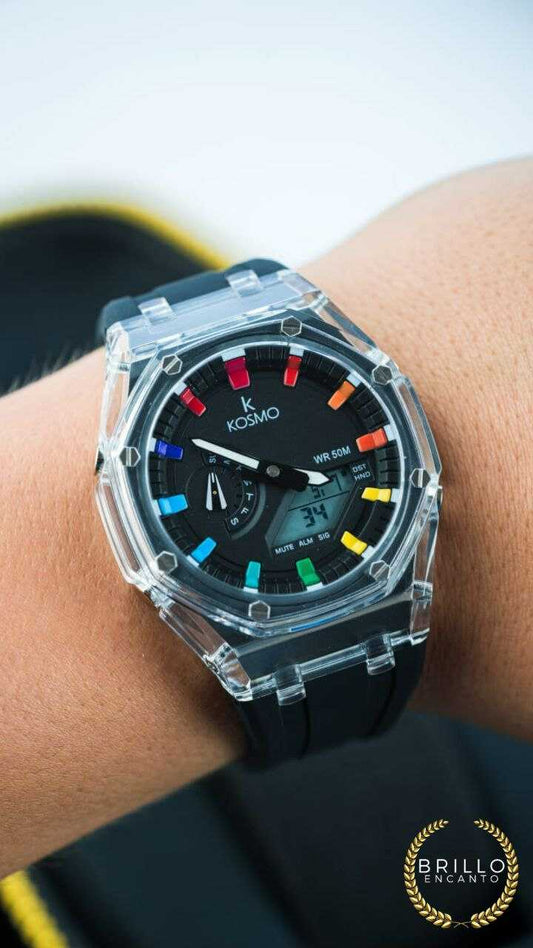 Reloj Unisex Kosmo Negro K4010 Doble hora Sumergible 50M
