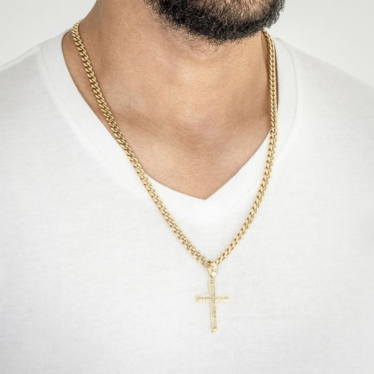 Set Oro18k Laminado Cadena Cubana y Dije Cruz Circones