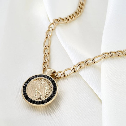 Set Oro18k Laminado Cadena Fígaro y Dije Caballo