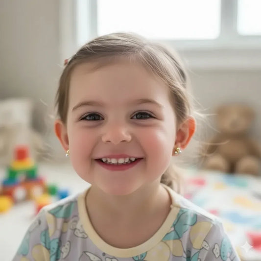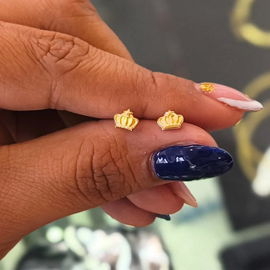 Aretes para Bebé en Oro Laminado 18K con Diseño de Corona y Rosca de Seguridad