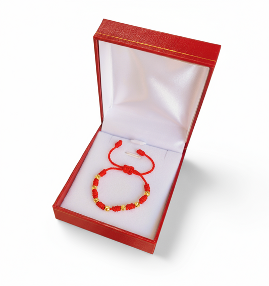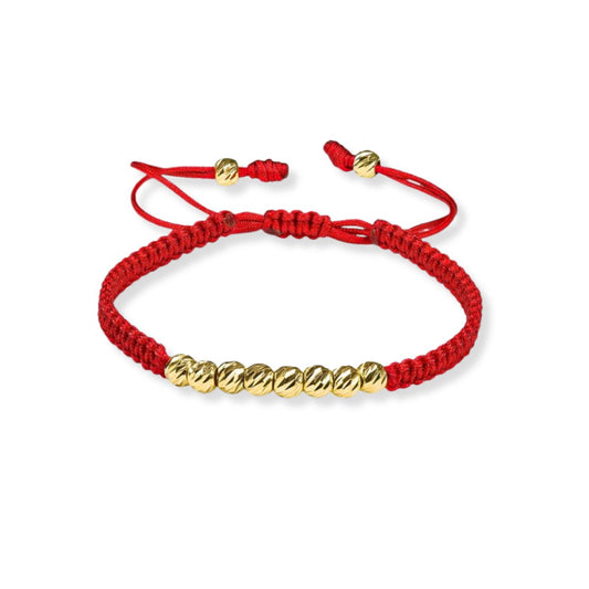 Pulsera Hilo Rojo con Balines Oro 18K Diamantados #5