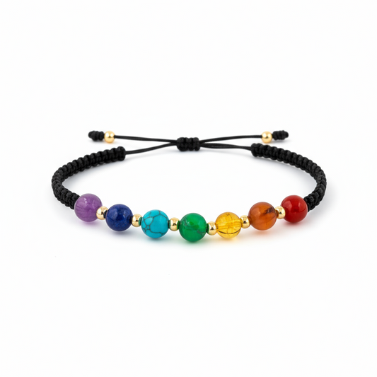 Pulsera 7 Chakras y Balines ORO18K Lisos o Diamantados
