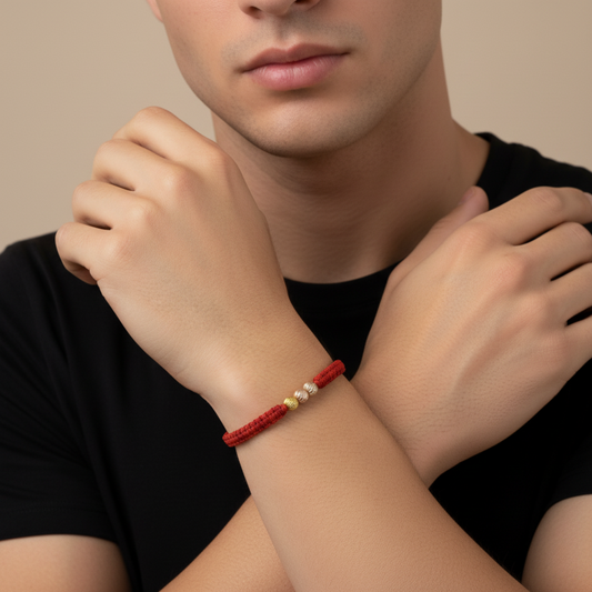 Pulsera Hilo Rojo Balines Oro 18K Diamantados Tricolor (Rosa, Blanco y Dorado) – Envío Gratis