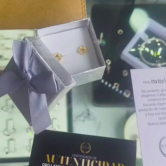 Aretes Topitos Oro Laminado 18K Antialérgicos con Rosca de Seguridad Trébol
