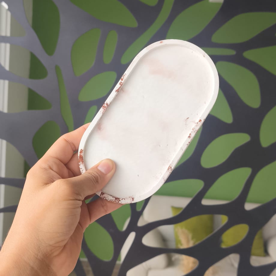 Bandeja Portajoyas Ovalada "Minimal Stone" - Cemento y Marmolina