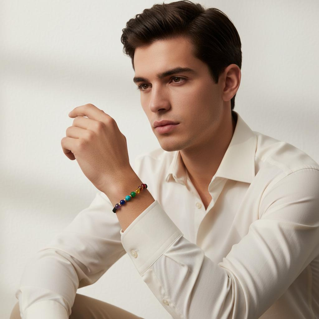 🧘♀️ Encuentra armonía y bienestar con esta pulsera única: Cada piedra natural ha sido cuidadosamente seleccionada para alinear tus 7 chakras, promoviendo paz, energía y equilibrio en tu día a día.